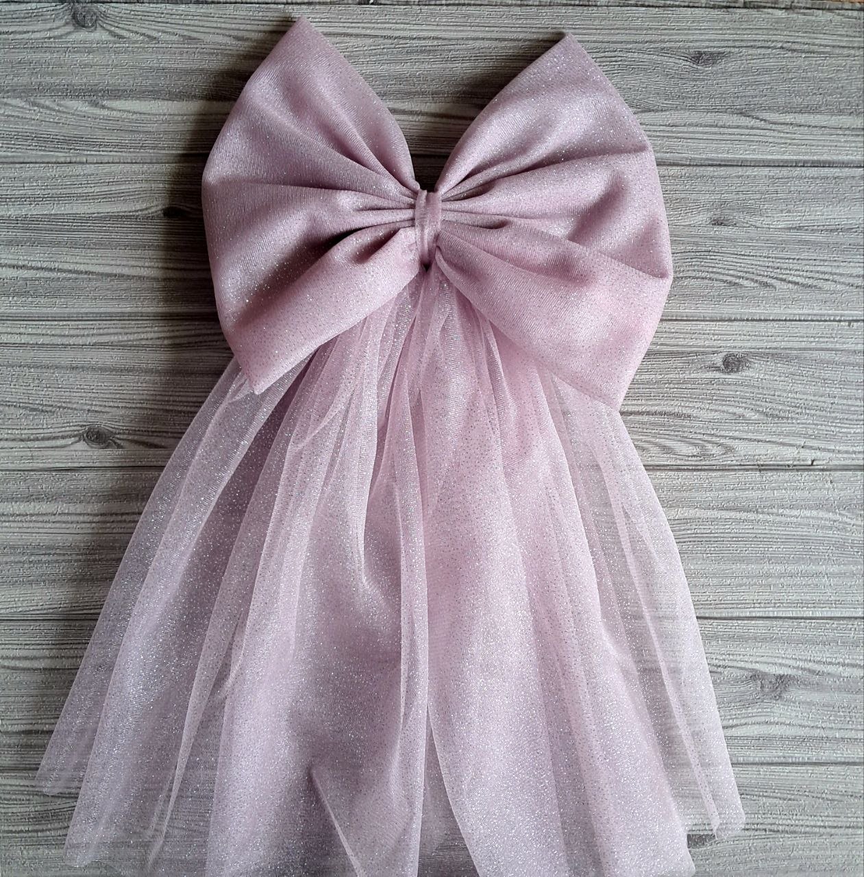Fiocco completo in tulle glitterato dimensioni 34x70 cm con un solo strato di code in tulle glitter.